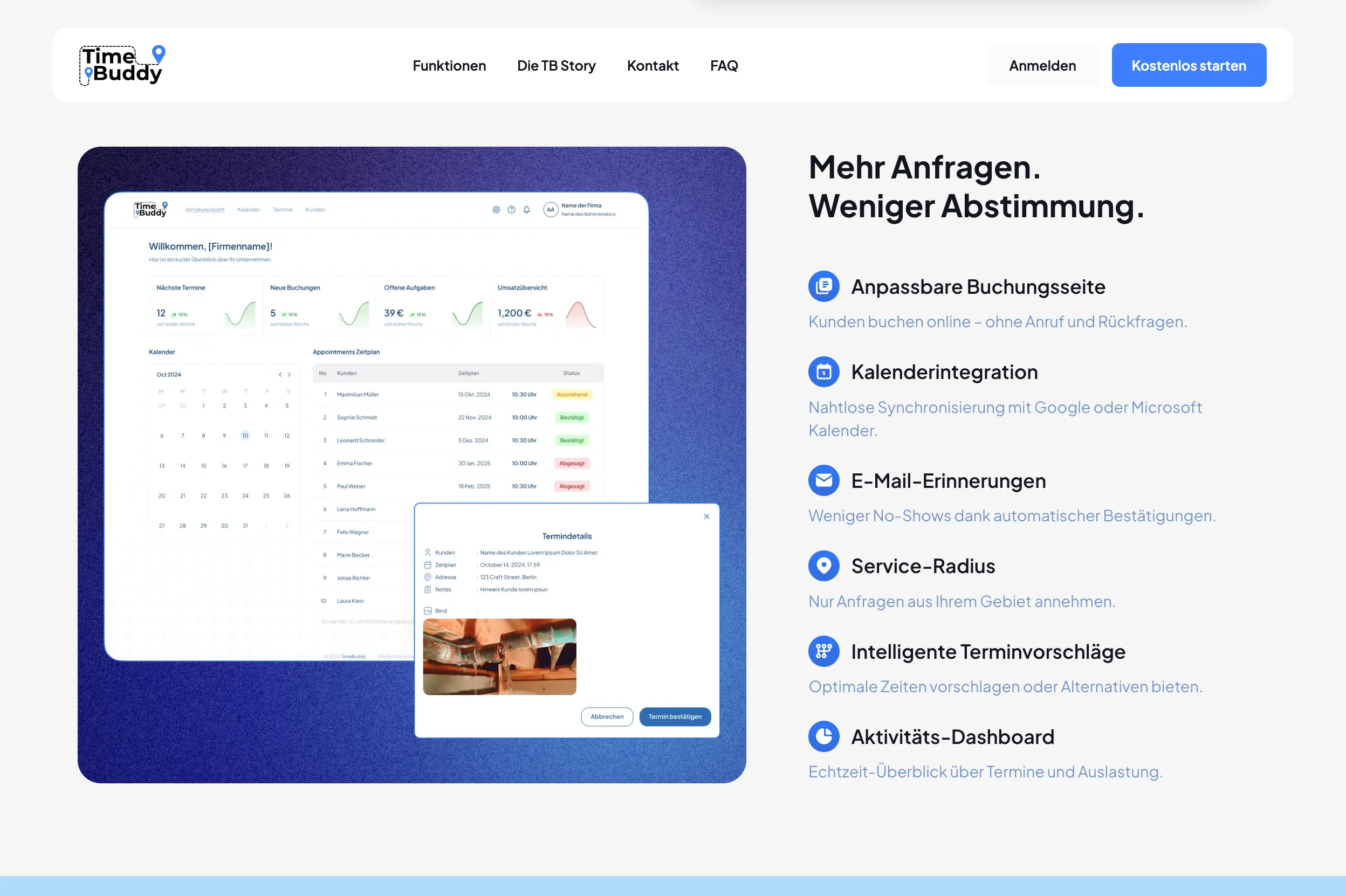 Time-Buddy revolutioniert die Zeiterfassung fĂŒr moderne Teams und Unternehmen. Unsere Plattform bietet eine intuitive und effiziente Lösung fĂŒr die Verwaltung von Arbeitszeiten, ProjektaufwĂ€nden und Ressourcen. Mit fortschrittlichen Features wie automatischer Zeiterfassung, detaillierten Projektberichten und flexiblen Abrechnungsoptionen optimieren wir den administrativen Aufwand und steigern die ProduktivitĂ€t. Die benutzerfreundliche OberflĂ€che ermöglicht es Teams, sich auf ihre Kernaufgaben zu konzentrieren, wĂ€hrend alle zeitbezogenen Aspekte zuverlĂ€ssig im Hintergrund erfasst werden.